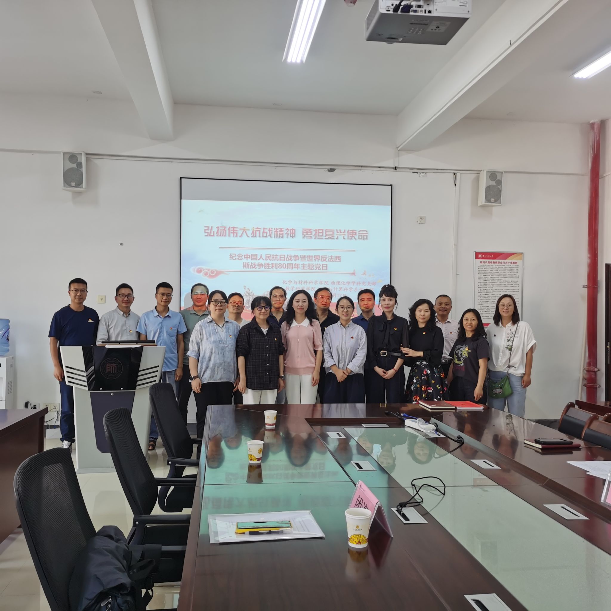 在回顾抗战史料分享环节,党支部支委杨媛老师讲解 了“抗战时期本地化工企业(如兵工厂物资提纯、防腐技术研发)的爱国担当”,并结合当前物理化学学科党支部青年教师科研方向(如新材料研发)谈传承 ;党支部党员赵云强老师分享 “抗战时期物化领域科学家(如侯德榜等)的救国事迹”,并结合自身教学经历谈 “如何向学生传递抗战精神中的坚守与创新”。