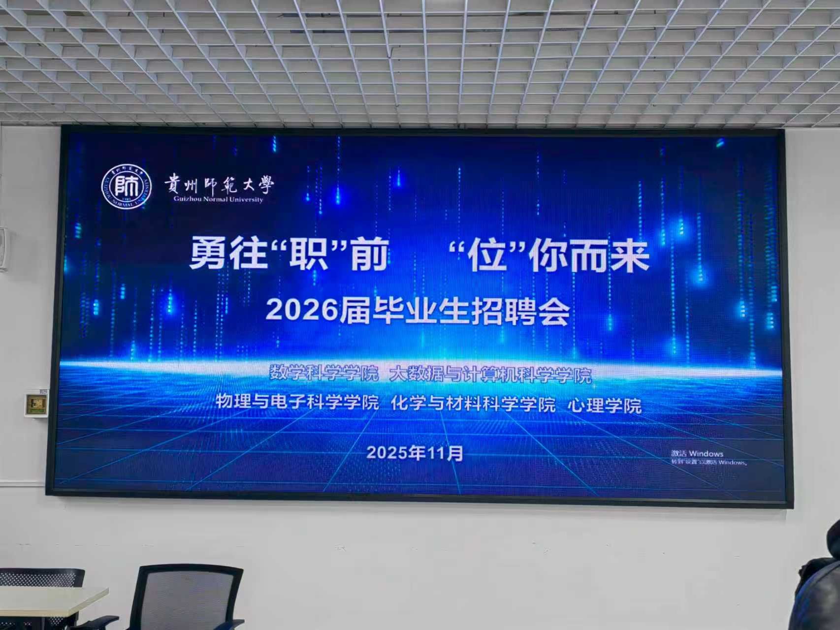 11月14日上午,贵州师范大学化学与材料科学学院联合数学科学学院、大数据与计算机科学学院、心理学院、物理与电子科学学院等“五院”联合在学校就业指导中心举办“勇往‘职’前”,“‘位’你而来”专场招聘会。本次招聘会引进了35家优质企业,精准投放相关就业岗位313个,计划招聘人数超700人,为毕业生有针对性提供了就业机会。