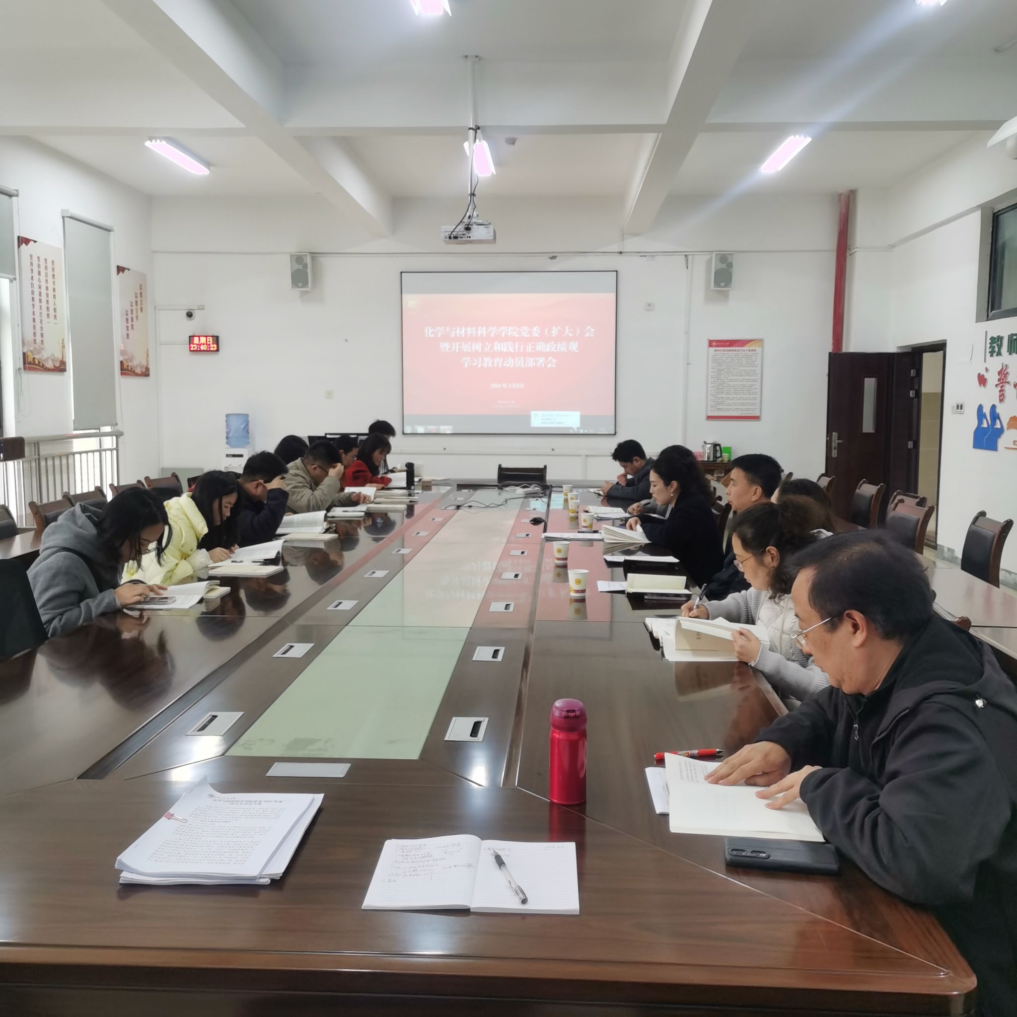 会议深入学习贯彻习近平总书记关于树立和践行正确政绩观的重要论述,传达学习中央党的建设领导小组会议、省委常委会暨党的建设工作领导小组会议、省委教育工委扩大会议和学校党的建设工作领导小组会议精神,深入细致研读学校相关工作安排和实施方案,结合学校党委部署与学院实际,对学院开展学习教育进行了系统安排。