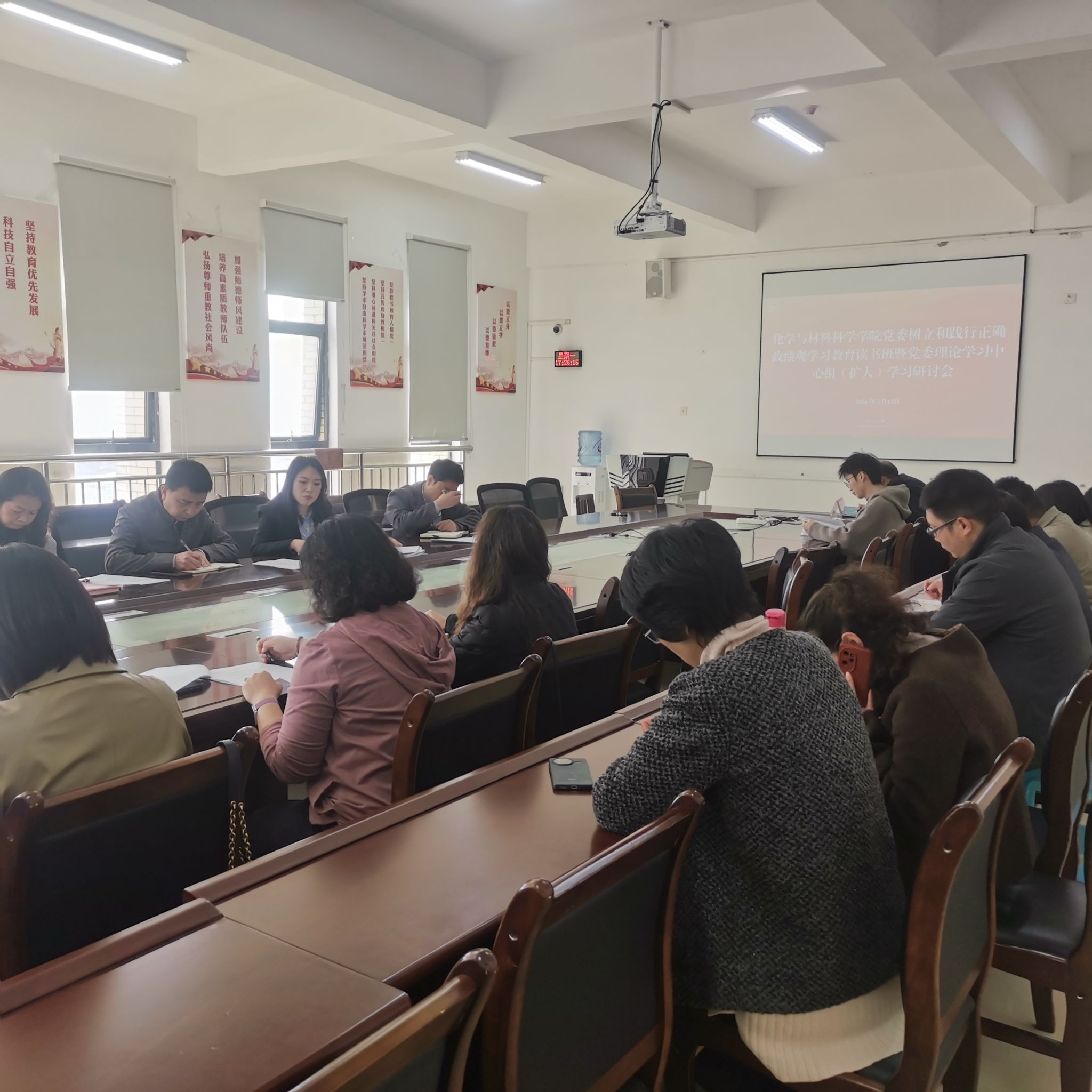 按照中央部署,落实省委、省委教育工委和学校党委的安排,深入抓实抓细学习研讨,3月13日,化学与材料科学学院党委举办树立和践行正确政绩观学习教育专题读书班。学院党委书记王媛君主持读书班学习研讨,学院党委班子成员、非党员中层领导干部、科级干部和各党支部书记及党支部班子成员参加。