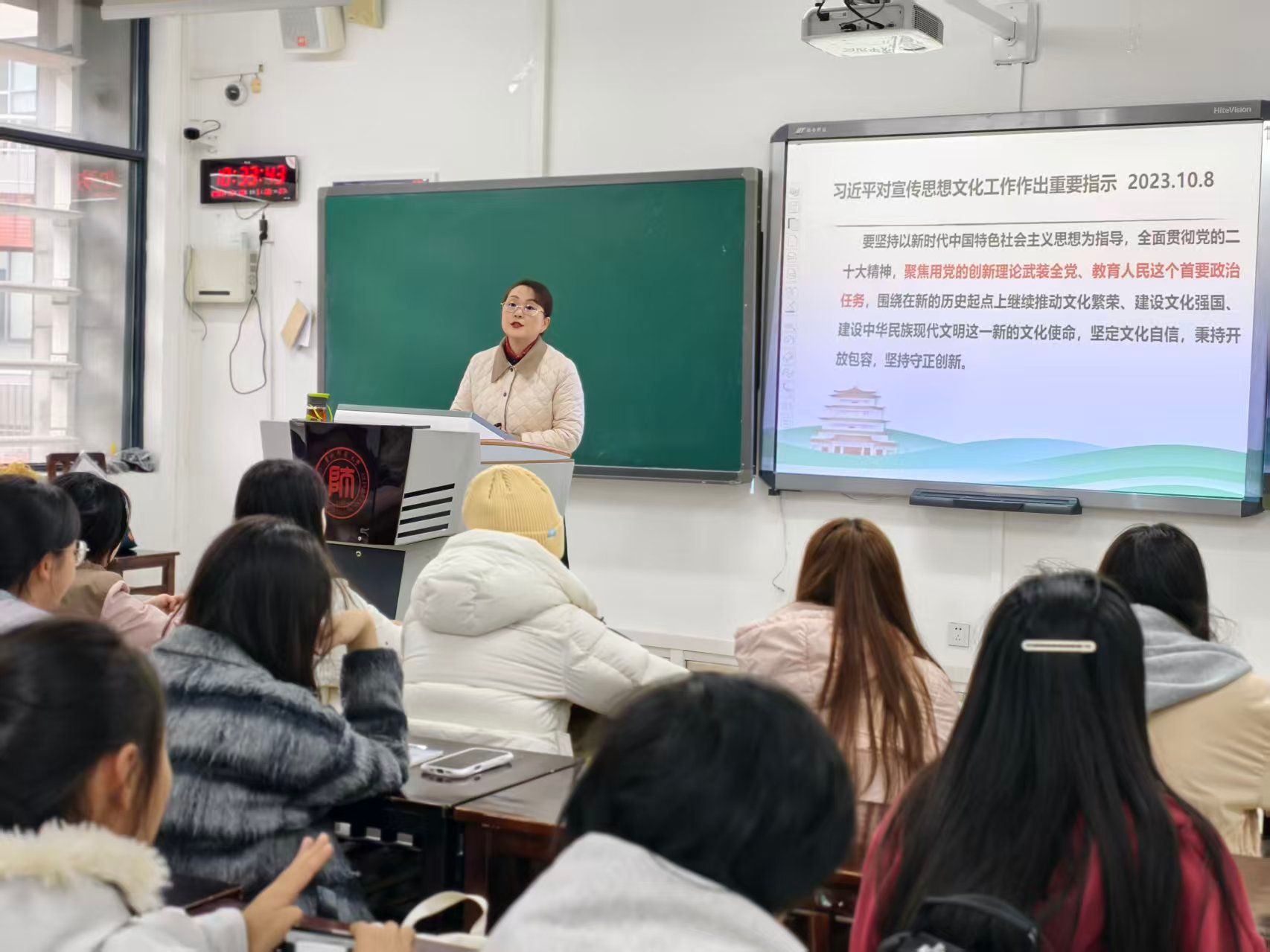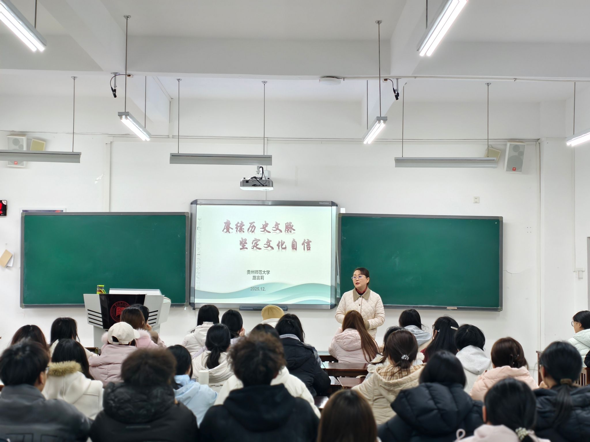 12月10日,校党委副书记路言莉在GJ2207教室,为2025级科学教育、科学教育(优师)班的同学们带来了一堂主题鲜明、内容丰富的《形势与政策》课。本次课程以“赓续历史文脉,坚定文化自信”为题,围绕“历史悠久缔造中华文化”“培根铸魂推动文化繁荣”“坚定文化自信 建设文化强国”三个层次展开系统阐述,引导青年学子深刻认识中华文化的博大精深与时代价值,自觉担当起推动文化繁荣、建设文化强国的历史使命。